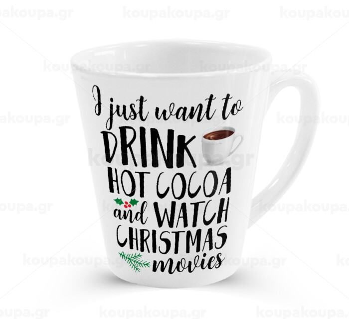 I just want to drink hot cocoa and watch christmas movies, Κούπα κωνική Latte Λευκή, κεραμική, 300ml