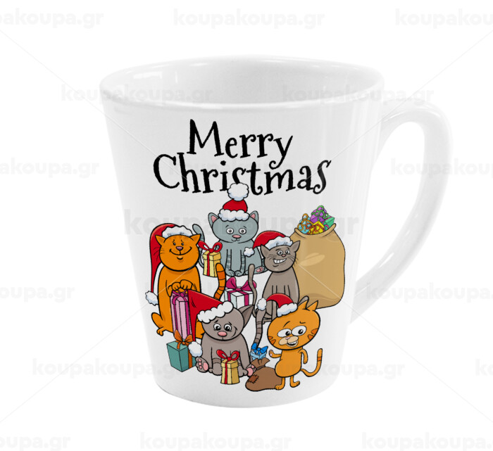 Merry Christmas Cats, Κούπα κωνική Latte Λευκή, κεραμική, 300ml