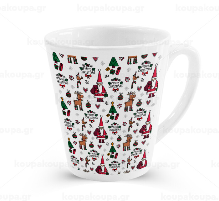 Santas, Deers & Trees, Κούπα κωνική Latte Λευκή, κεραμική, 300ml