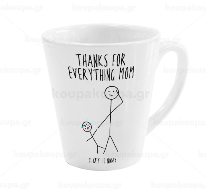 Thanks for everything mom, Κούπα κωνική Latte Λευκή, κεραμική, 300ml