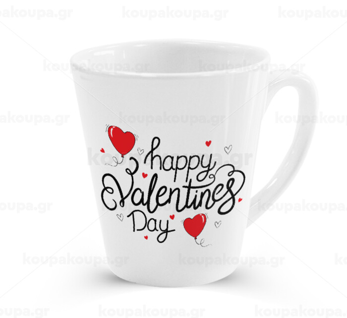 Happy Valentines Day!!!, Κούπα κωνική Latte Λευκή, κεραμική, 300ml