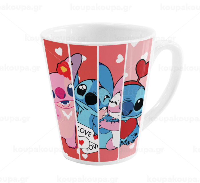 Lilo & Stitch Love, Κούπα κωνική Latte Λευκή, κεραμική, 300ml