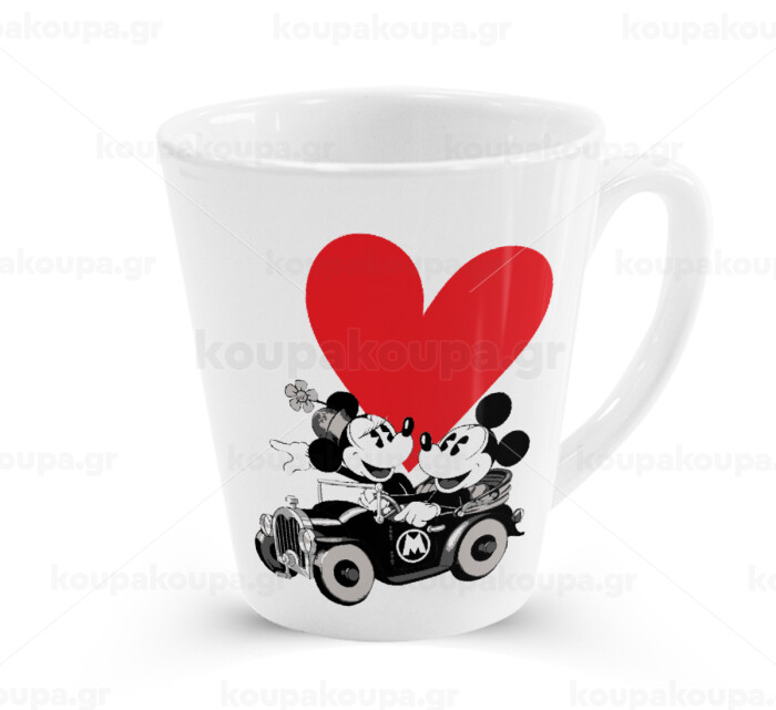 Mickey & Minnie love car, Κούπα κωνική Latte Λευκή, κεραμική, 300ml