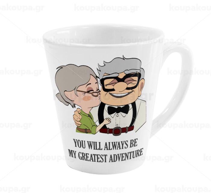 UP, YOU WILL ALWAYS BE MY GREATEST ADVENTURE, Κούπα κωνική Latte Λευκή, κεραμική, 300ml