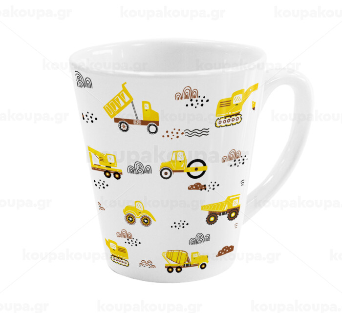 Αμαξάκια φορτωτές και μπουλντόζες, Κούπα κωνική Latte Λευκή, κεραμική, 300ml