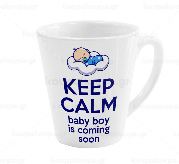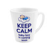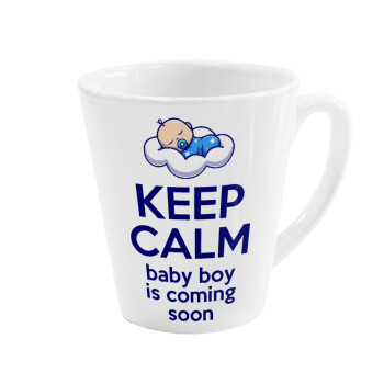 KEEP CALM baby boy is coming soon!!!, Κούπα κωνική Latte Λευκή, κεραμική, 300ml