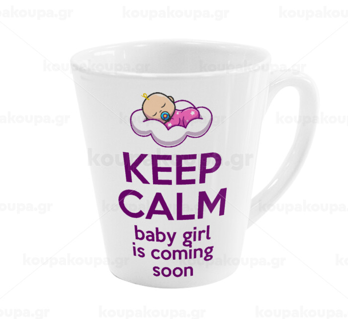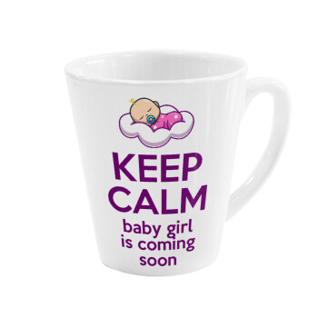 KEEP CALM baby girl is coming soon!!!, Κούπα κωνική Latte Λευκή, κεραμική, 300ml