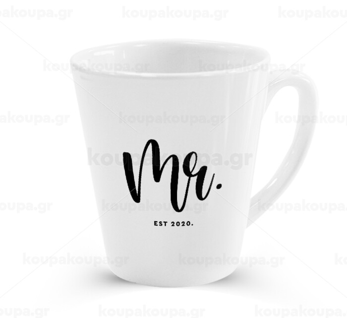 Mr & Mrs (Mr), Κούπα κωνική Latte Λευκή, κεραμική, 300ml