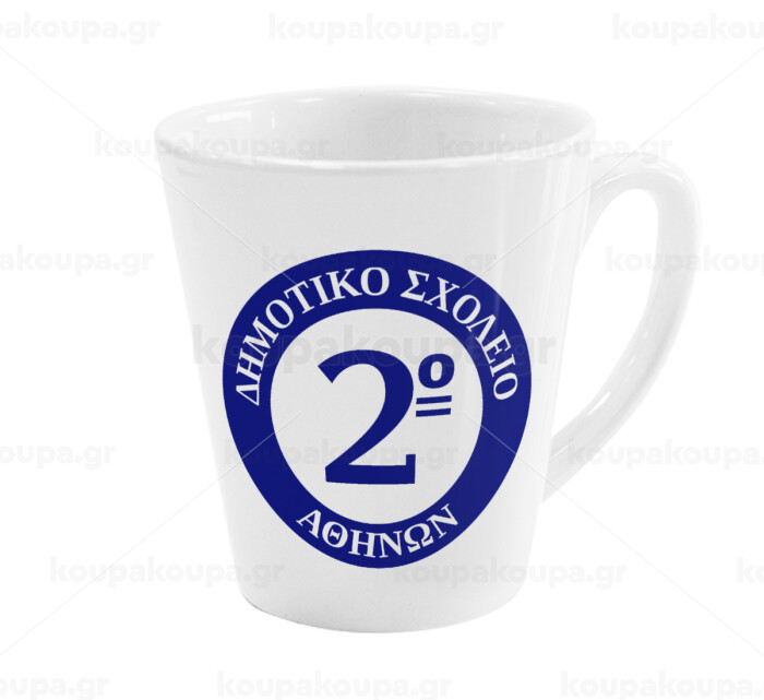 Έμβλημα Σχολικό μπλε, Κούπα κωνική Latte Λευκή, κεραμική, 300ml