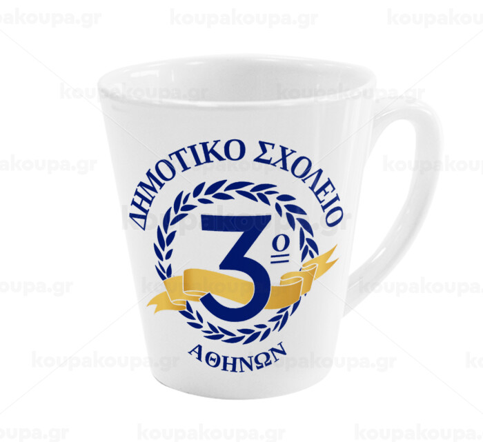 Έμβλημα Σχολικό μπλε, Κούπα κωνική Latte Λευκή, κεραμική, 300ml