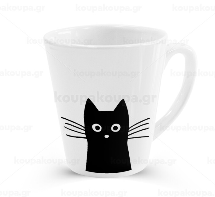 Μαύρη γάτα, Κούπα κωνική Latte Λευκή, κεραμική, 300ml