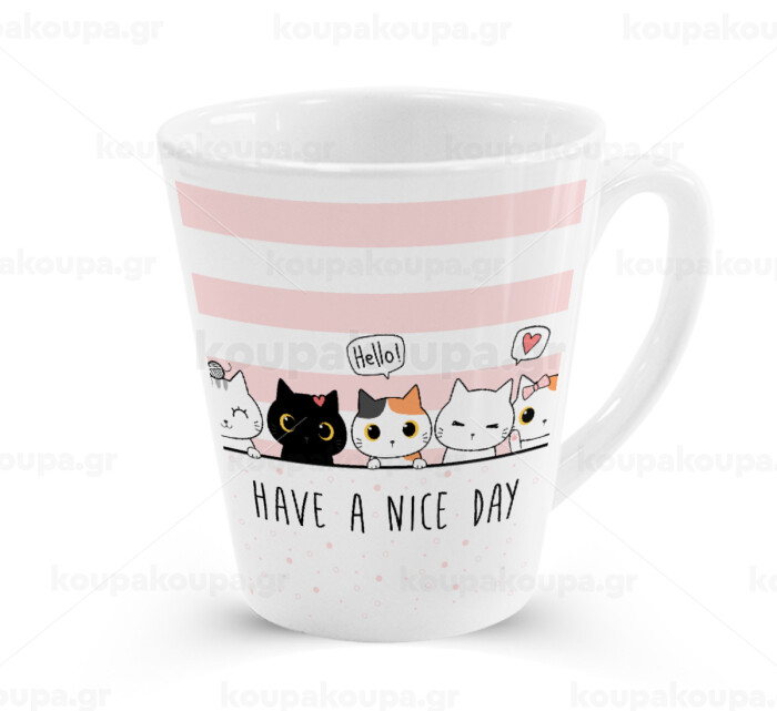 Have a nice day cats, Κούπα κωνική Latte Λευκή, κεραμική, 300ml