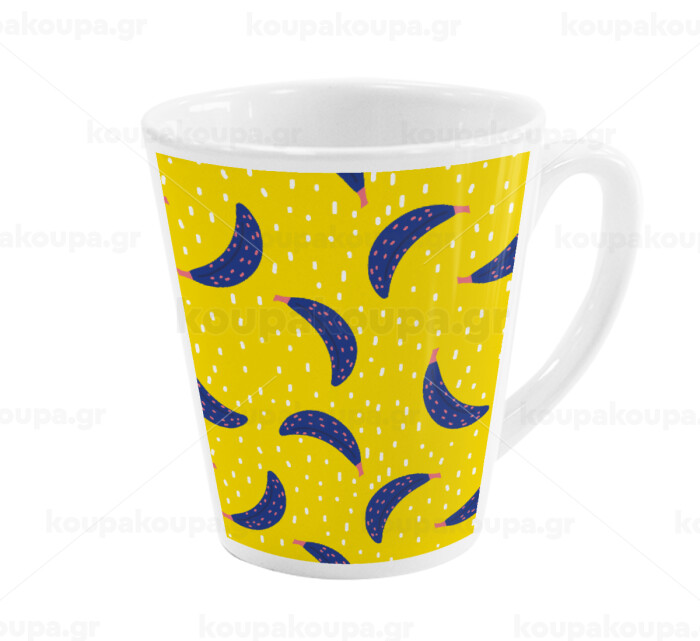 Yellow seamless with blue bananas, Κούπα κωνική Latte Λευκή, κεραμική, 300ml