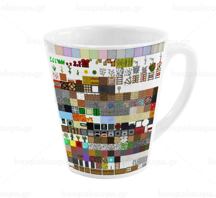 Minecraft blocks, Κούπα κωνική Latte Λευκή, κεραμική, 300ml