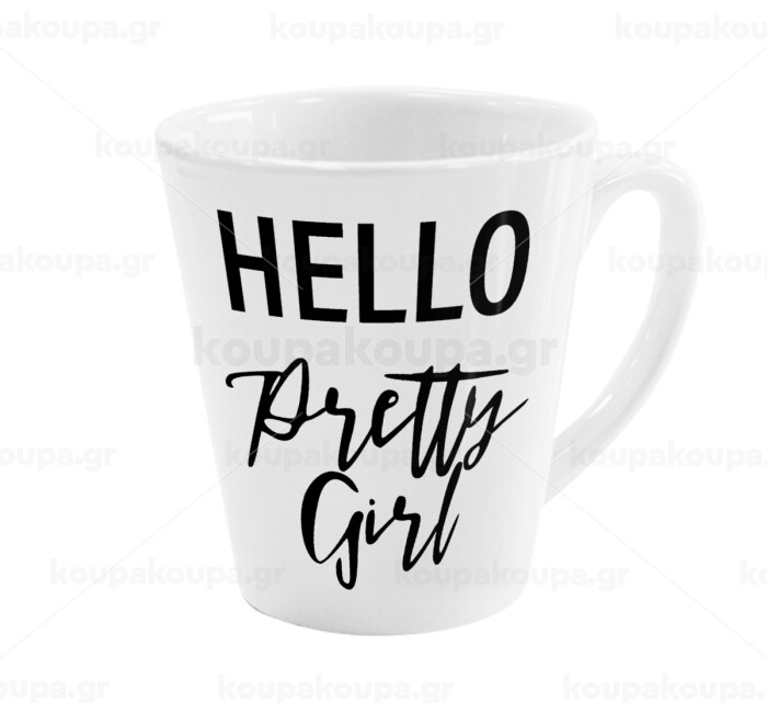Hello pretty girl, Κούπα κωνική Latte Λευκή, κεραμική, 300ml