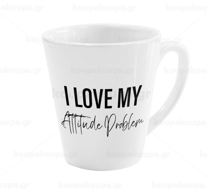 I love my attitude problem, Κούπα κωνική Latte Λευκή, κεραμική, 300ml
