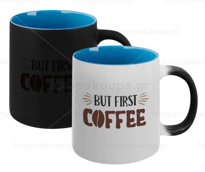 But first Coffee, Κούπα Μαγική εσωτερικό μπλε, κεραμική 330ml που αλλάζει χρώμα με το ζεστό ρόφημα