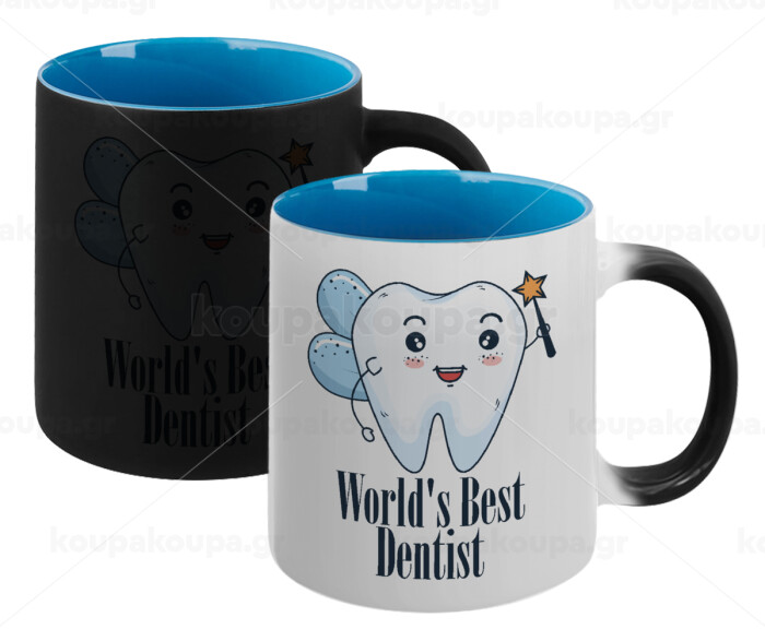 World's Best Dentist, Κούπα Μαγική εσωτερικό μπλε, κεραμική 330ml που αλλάζει χρώμα με το ζεστό ρόφημα