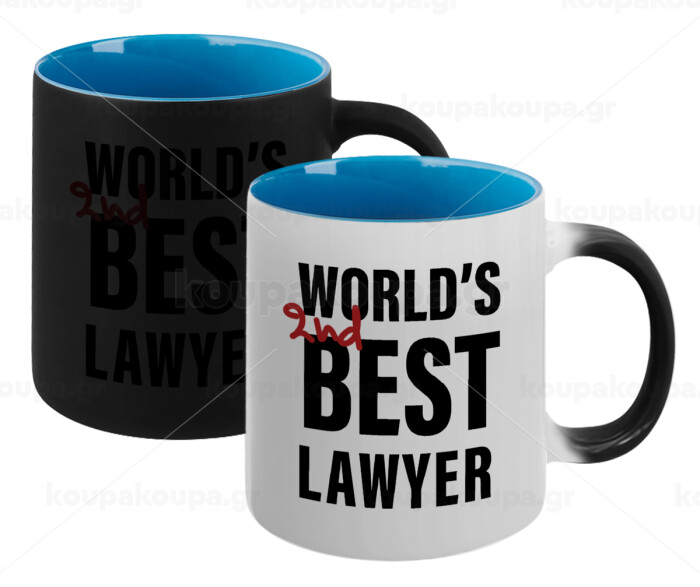 2nd, World Best Lawyer , Κούπα Μαγική εσωτερικό μπλε, κεραμική 330ml που αλλάζει χρώμα με το ζεστό ρόφημα