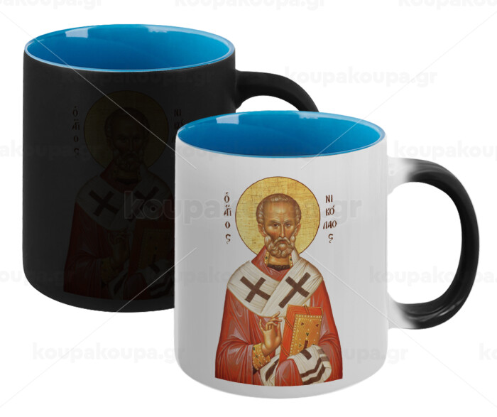 Άγιος Νικόλαος, Κούπα Μαγική εσωτερικό μπλε, κεραμική 330ml που αλλάζει χρώμα με το ζεστό ρόφημα