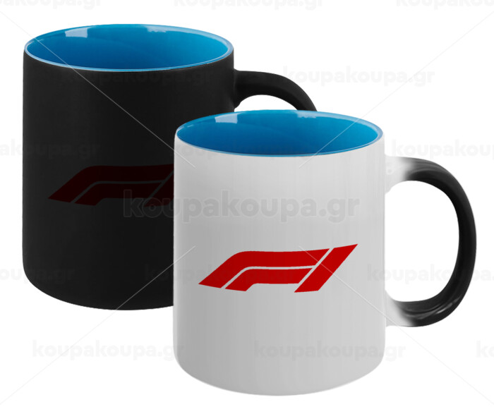 Formula 1, Κούπα Μαγική εσωτερικό μπλε, κεραμική 330ml που αλλάζει χρώμα με το ζεστό ρόφημα