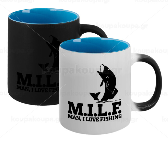 M.I.L.F. Mam i love fishing, Κούπα Μαγική εσωτερικό μπλε, κεραμική 330ml που αλλάζει χρώμα με το ζεστό ρόφημα
