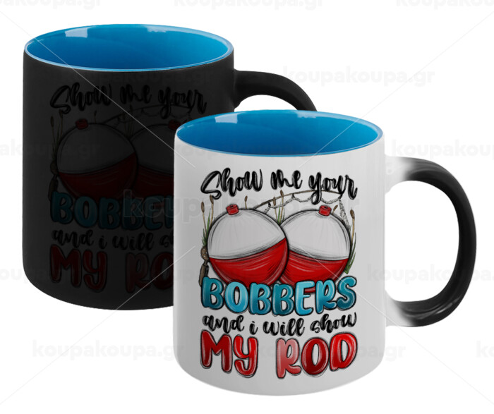 Show me your bobbers and i will show my rod , Κούπα Μαγική εσωτερικό μπλε, κεραμική 330ml που αλλάζει χρώμα με το ζεστό ρόφημα