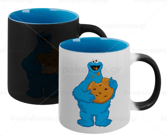 Cookie Monster, Κούπα Μαγική εσωτερικό μπλε, κεραμική 330ml που αλλάζει χρώμα με το ζεστό ρόφημα