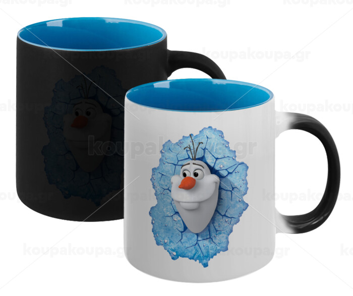 Frozen Olaf, Κούπα Μαγική εσωτερικό μπλε, κεραμική 330ml που αλλάζει χρώμα με το ζεστό ρόφημα