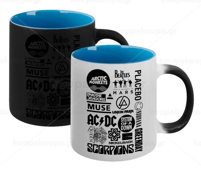 Best Rock Bands Collection, Κούπα Μαγική εσωτερικό μπλε, κεραμική 330ml που αλλάζει χρώμα με το ζεστό ρόφημα
