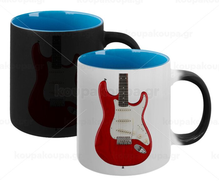 Guitar stratocaster, Κούπα Μαγική εσωτερικό μπλε, κεραμική 330ml που αλλάζει χρώμα με το ζεστό ρόφημα