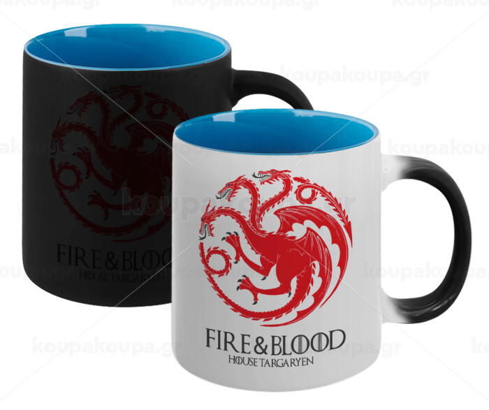GOT House Targaryen, Fire Blood, Κούπα Μαγική εσωτερικό μπλε, κεραμική 330ml που αλλάζει χρώμα με το ζεστό ρόφημα