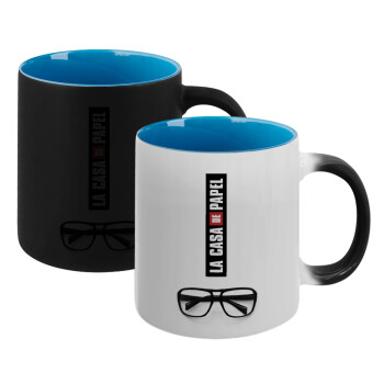 la professor, γυαλιά, Κούπα Μαγική εσωτερικό μπλε, κεραμική 330ml που αλλάζει χρώμα με το ζεστό ρόφημα
