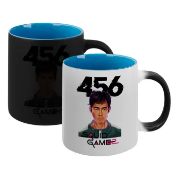 Squid game 456 Gi-Hun, Κούπα Μαγική εσωτερικό μπλε, κεραμική 330ml που αλλάζει χρώμα με το ζεστό ρόφημα