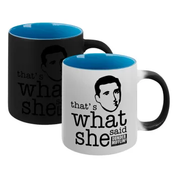 The office Michael That's what she said, Κούπα Μαγική εσωτερικό μπλε, κεραμική 330ml που αλλάζει χρώμα με το ζεστό ρόφημα
