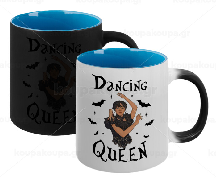 Wednesday Addams Dance, Κούπα Μαγική εσωτερικό μπλε, κεραμική 330ml που αλλάζει χρώμα με το ζεστό ρόφημα