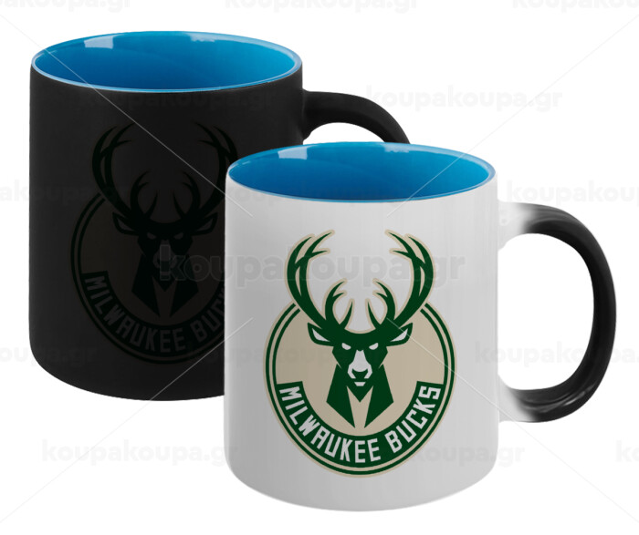 Milwaukee bucks, Κούπα Μαγική εσωτερικό μπλε, κεραμική 330ml που αλλάζει χρώμα με το ζεστό ρόφημα