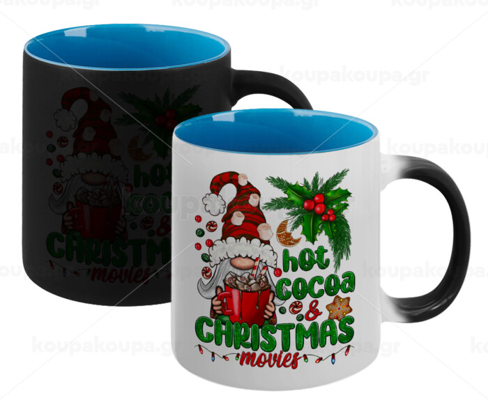 Hot cocoa and Christmas movies, Κούπα Μαγική εσωτερικό μπλε, κεραμική 330ml που αλλάζει χρώμα με το ζεστό ρόφημα
