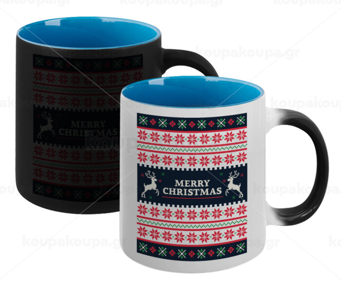 Merry Christmas Vintage, Κούπα Μαγική εσωτερικό μπλε, κεραμική 330ml που αλλάζει χρώμα με το ζεστό ρόφημα