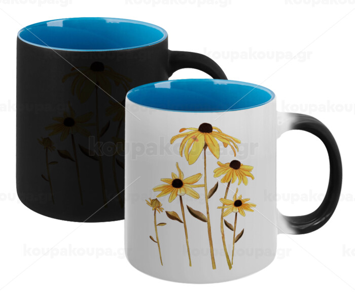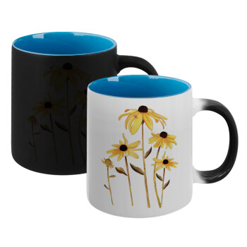 Daisies flower, Κούπα Μαγική εσωτερικό μπλε, κεραμική 330ml που αλλάζει χρώμα με το ζεστό ρόφημα