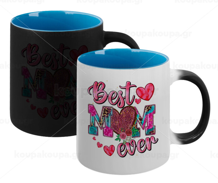 Best mom ever Mother's Day pink, Κούπα Μαγική εσωτερικό μπλε, κεραμική 330ml που αλλάζει χρώμα με το ζεστό ρόφημα