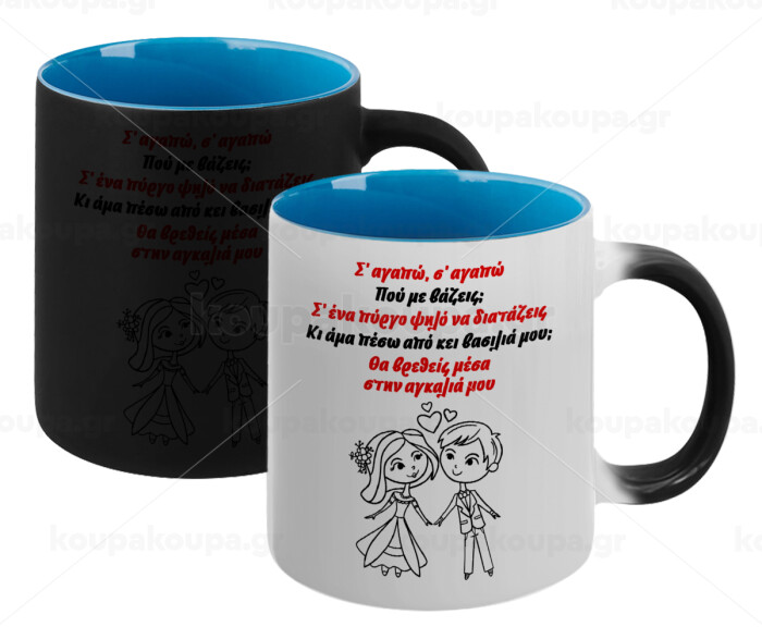 Σ΄ αγαπώ σ΄ αγαπώ που με βάζεις, Κούπα Μαγική εσωτερικό μπλε, κεραμική 330ml που αλλάζει χρώμα με το ζεστό ρόφημα