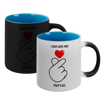 I just love you, that's all., Κούπα Μαγική εσωτερικό μπλε, κεραμική 330ml που αλλάζει χρώμα με το ζεστό ρόφημα