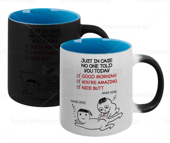 Just in case no one told you today..., Κούπα Μαγική εσωτερικό μπλε, κεραμική 330ml που αλλάζει χρώμα με το ζεστό ρόφημα