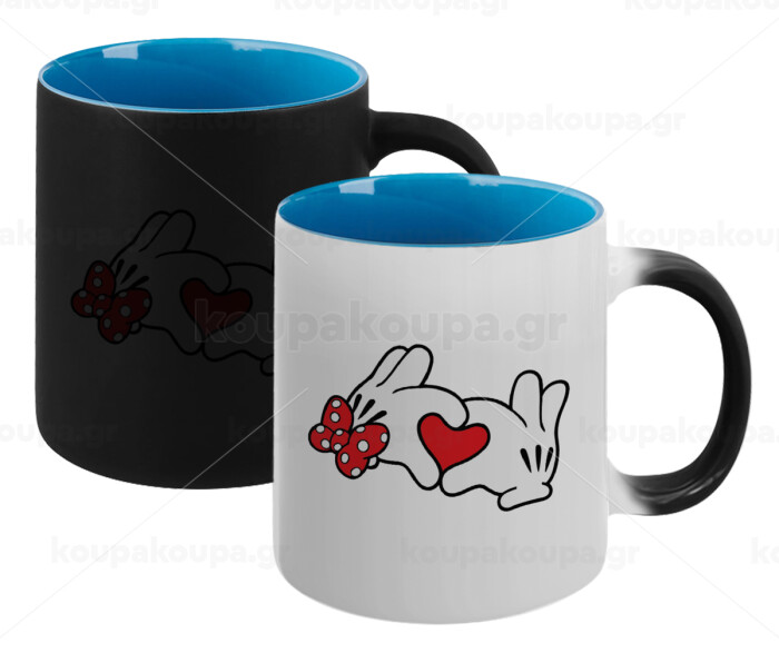 Love hands, Κούπα Μαγική εσωτερικό μπλε, κεραμική 330ml που αλλάζει χρώμα με το ζεστό ρόφημα