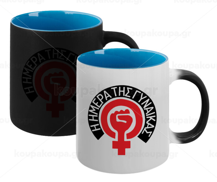 Ημέρα της γυναίκας, Κούπα Μαγική εσωτερικό μπλε, κεραμική 330ml που αλλάζει χρώμα με το ζεστό ρόφημα