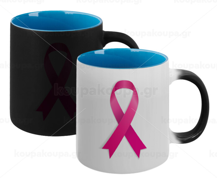 Παγκόσμια Ημέρα κατά του Καρκίνου, Κούπα Μαγική εσωτερικό μπλε, κεραμική 330ml που αλλάζει χρώμα με το ζεστό ρόφημα