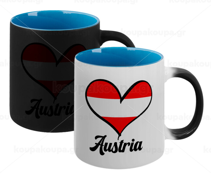 Austria flag, Κούπα Μαγική εσωτερικό μπλε, κεραμική 330ml που αλλάζει χρώμα με το ζεστό ρόφημα
