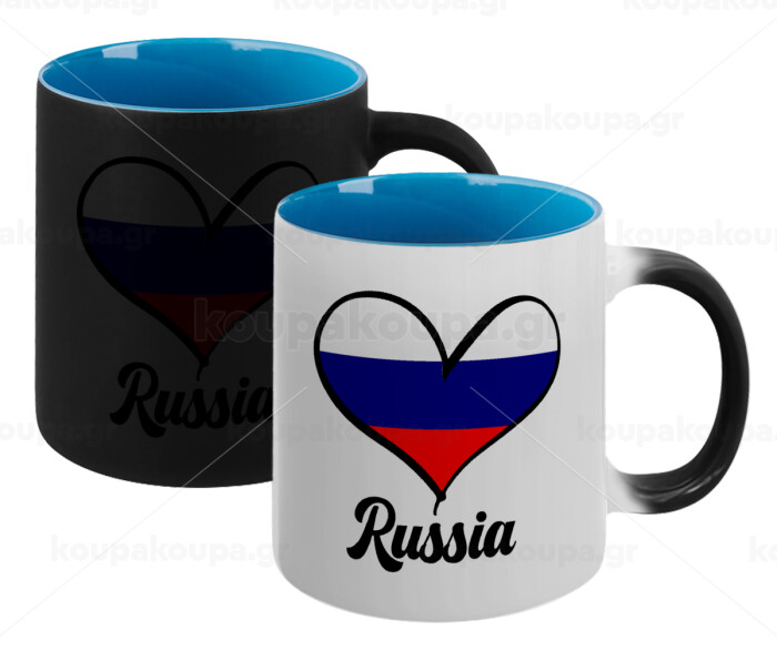 Russia flag, Κούπα Μαγική εσωτερικό μπλε, κεραμική 330ml που αλλάζει χρώμα με το ζεστό ρόφημα