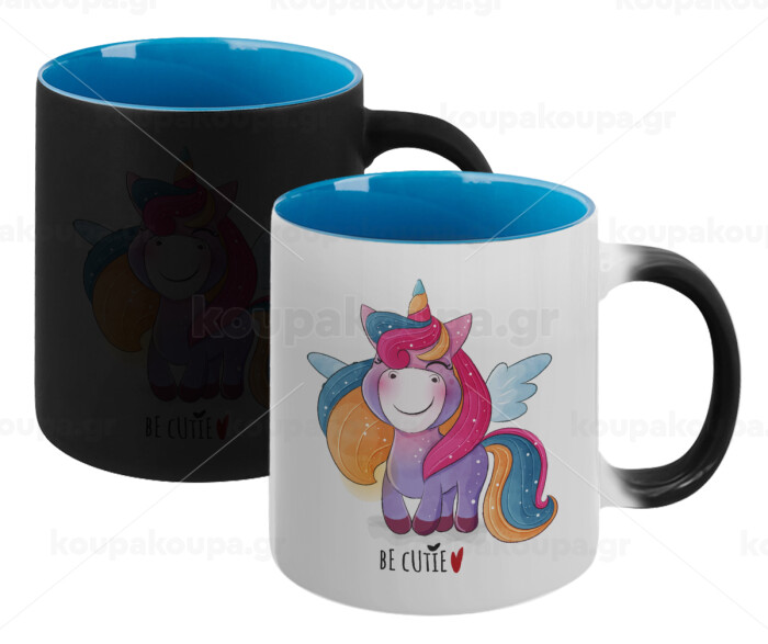 Μονόκερος, Κούπα Μαγική εσωτερικό μπλε, κεραμική 330ml που αλλάζει χρώμα με το ζεστό ρόφημα